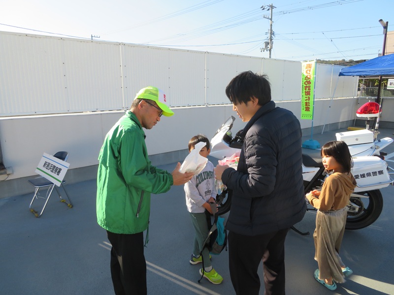 において防犯広報を実施しました。当日は、新居浜警察署が実施したパトカー・白バイ乗車体験会場において、乗車体験に来場した来客に対して特殊詐欺防止や少年非行防止の広報を実施しました。←「社会福祉協議会長表彰を頂きました」前の記事へ