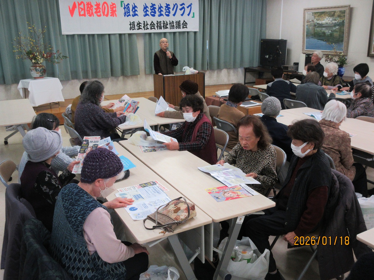 1月18日(日)垣生公民館において、開催された一日敬老の家において、垣生支部が特殊詐欺防止講習会を実施しました。